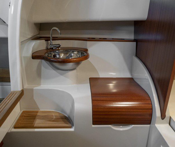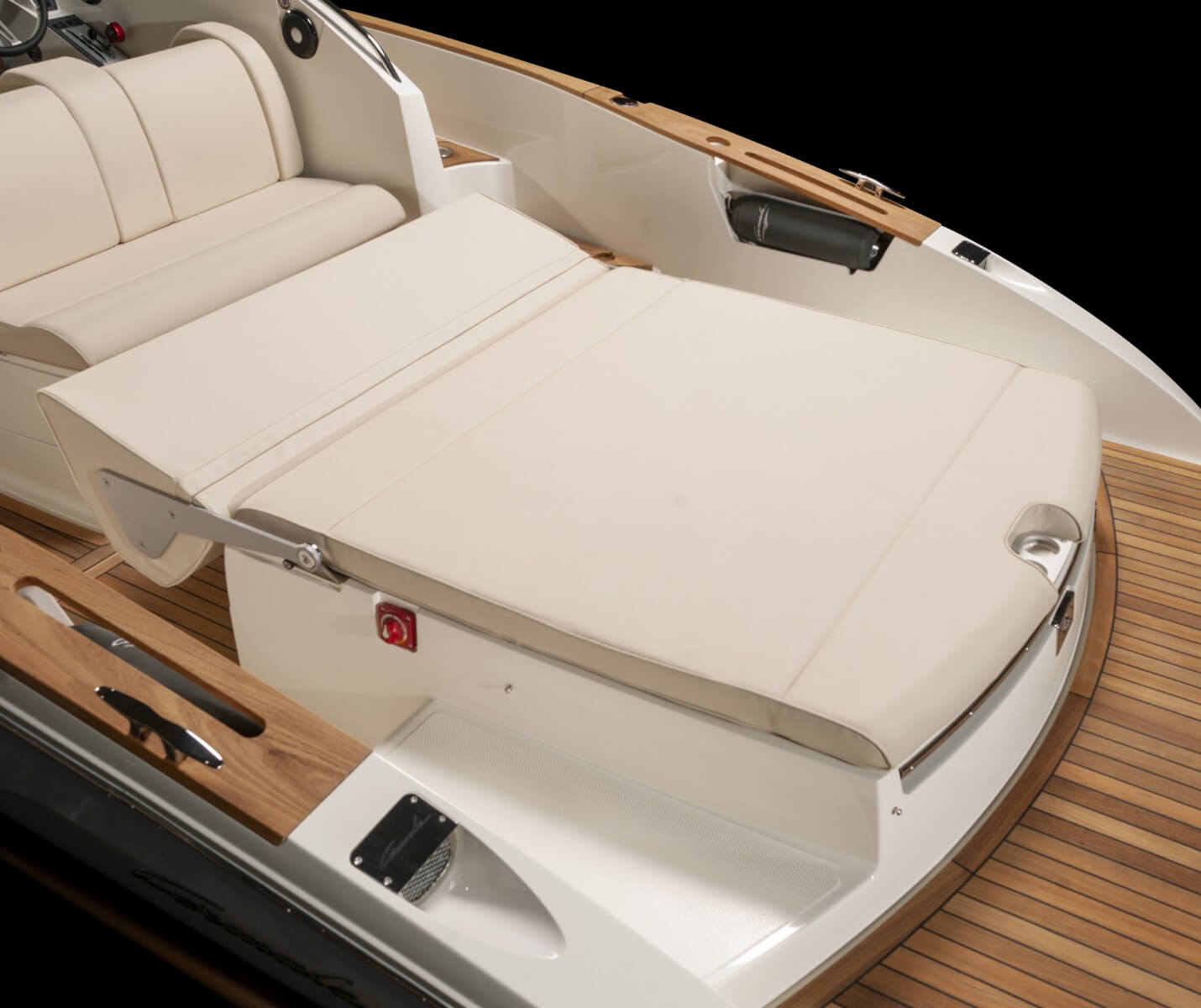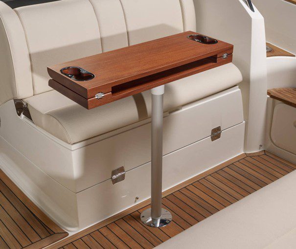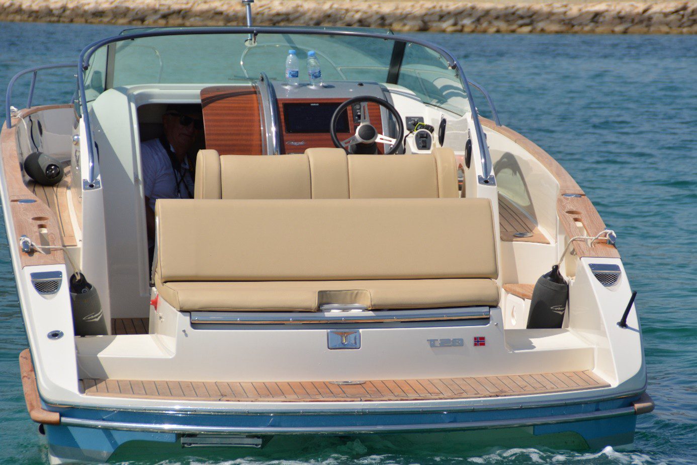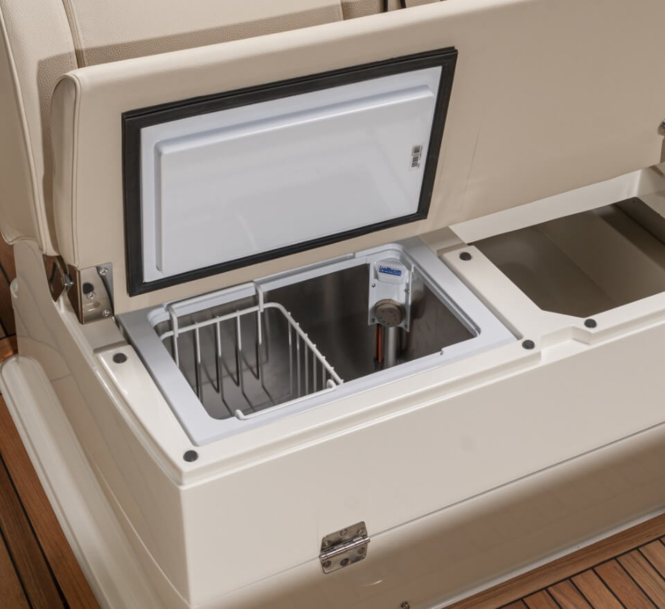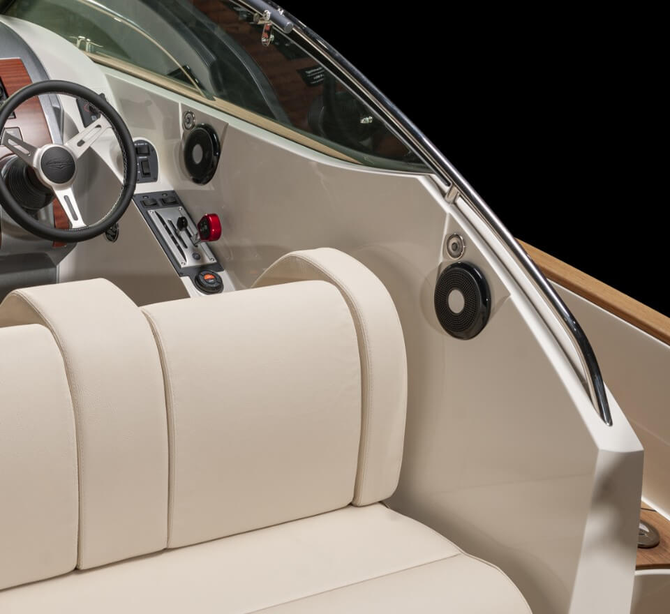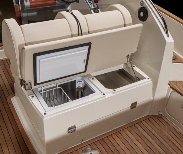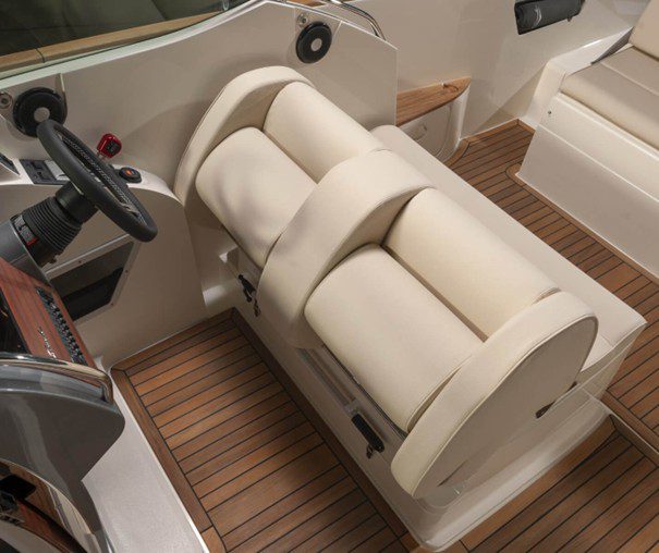 El T-28 tiene una zona protegida para tomar el sol en la proa y una elegante tumbona/plataforma de actividades en la popa. El respaldo del asiento trasero se puede ajustar fácilmente en varias posiciones para utilizarlo como asiento, tumbona o tumbona. El T-28 se puede suministrar en una variedad de colores, motores y combinaciones de equipamiento, adaptados a cada cliente.