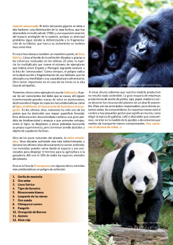 el tigre, el elefante, el rinoceronte de Sumatra o el oran- ble. Ellas son las principales responsables, pero detrás es-